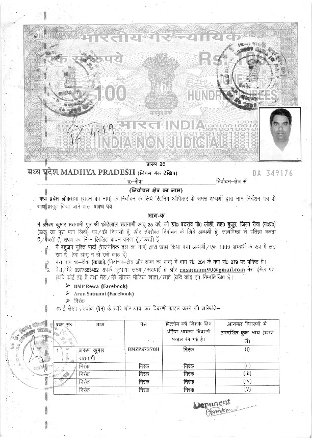 | மத்தியப் பிரதேசம் | Rewa | Monday, 6 May 2019 | Arun Kumar Satnami(Affadavit) | Janardan Mishra |