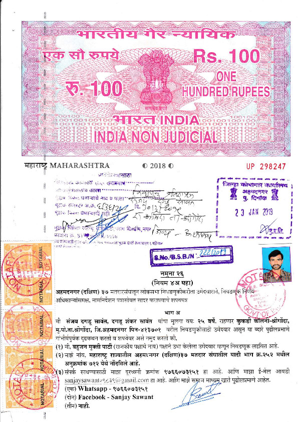 | மகாராட்டிரம் | Ahmadnagar | Tuesday, 23 April 2019 | Sanjay Dagdu Sawant(Affadavit) | Dr. Sujay Radhakrishna Vikhepatil |