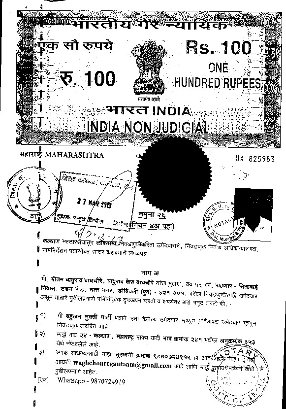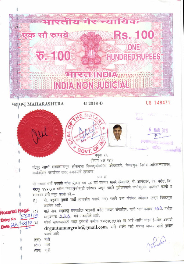 | மகாராட்டிரம் | Chandrapur | Thursday, 11 April 2019 | Gautam Ganpat Nagrale(Affadavit) | Balubhau Alias Suresh Narayan Dhanorkar |