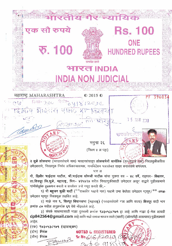 | மகாராட்டிரம் | Dhule | Monday, 29 April 2019 | Dilip Bhaidas Patil(Affadavit) | Bhamre Subhash Ramrao |