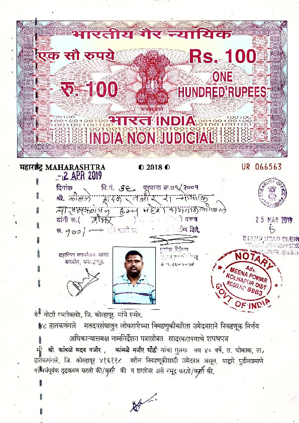 | மகாராட்டிரம் | கோலாப்பூர் | Tuesday, 23 April 2019 | Siddharth Abaso Nagaratna(Affadavit) | Sanjay Sadashivrao Mandlik |