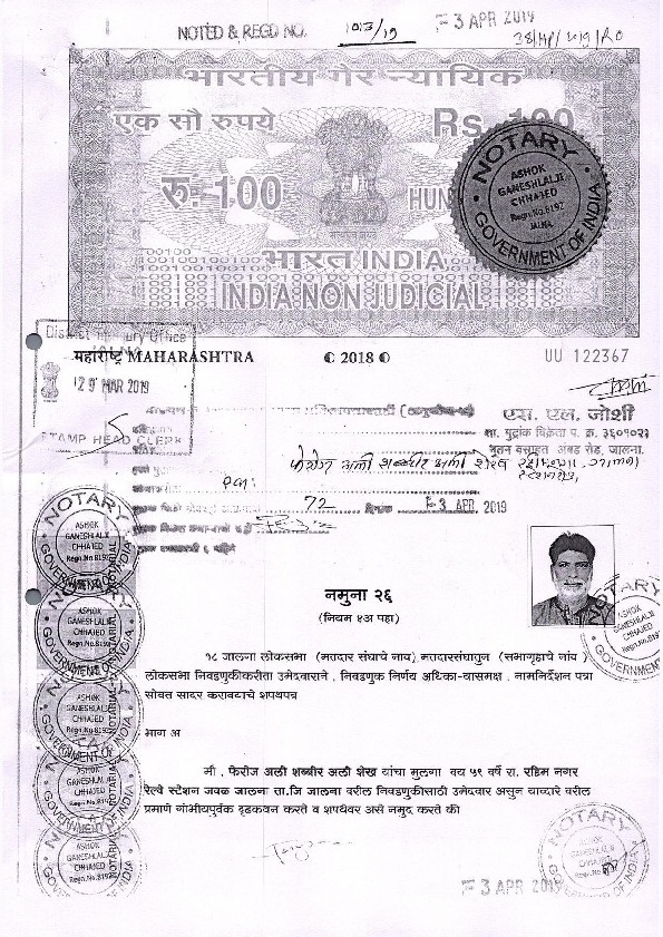 | மகாராட்டிரம் | Jalna | Tuesday, 23 April 2019 | Feroz Ali(Affadavit) | Danve Raosaheb Dadarao |