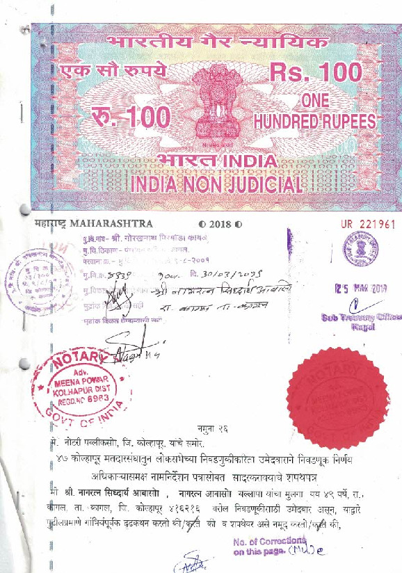| மகாராட்டிரம் | கோலாப்பூர் | Tuesday, 23 April 2019 | Nagratna Siddharth(Affadavit) | Sanjay Sadashivrao Mandlik |