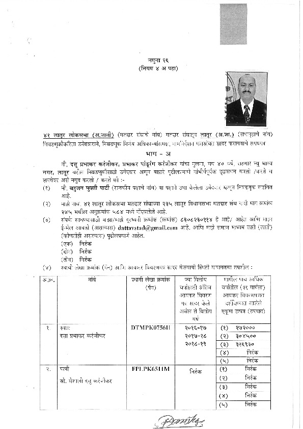 | மகாராட்டிரம் | லாத்தூர் | Thursday, 18 April 2019 | Dattu Prabhakar Karanjikar(Affadavit) | Sudhakar Tukaram Shrangare |