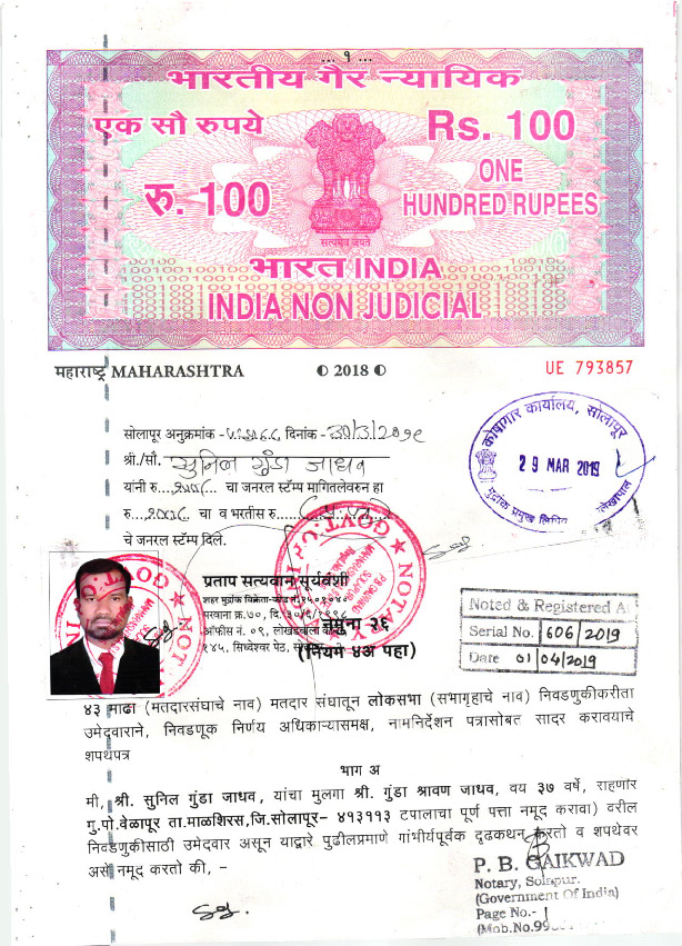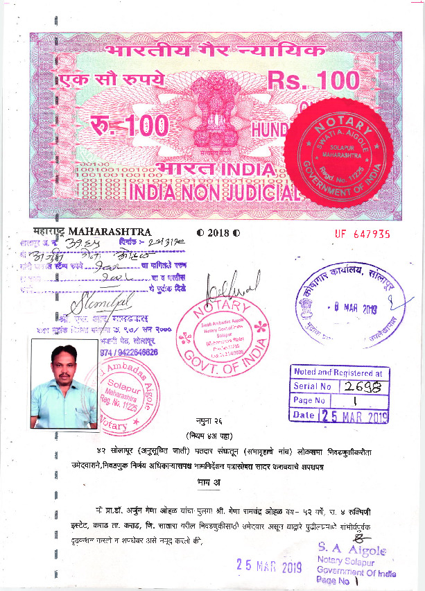 | மகாராட்டிரம் | சோலாப்பூர் | Thursday, 18 April 2019 | Prof. Dr. Ohal Arjun Gena(Affadavit) | Shri. Sha. Bra. Dr. Jai Sidheshwar Shivachary Mahaswamiji |
