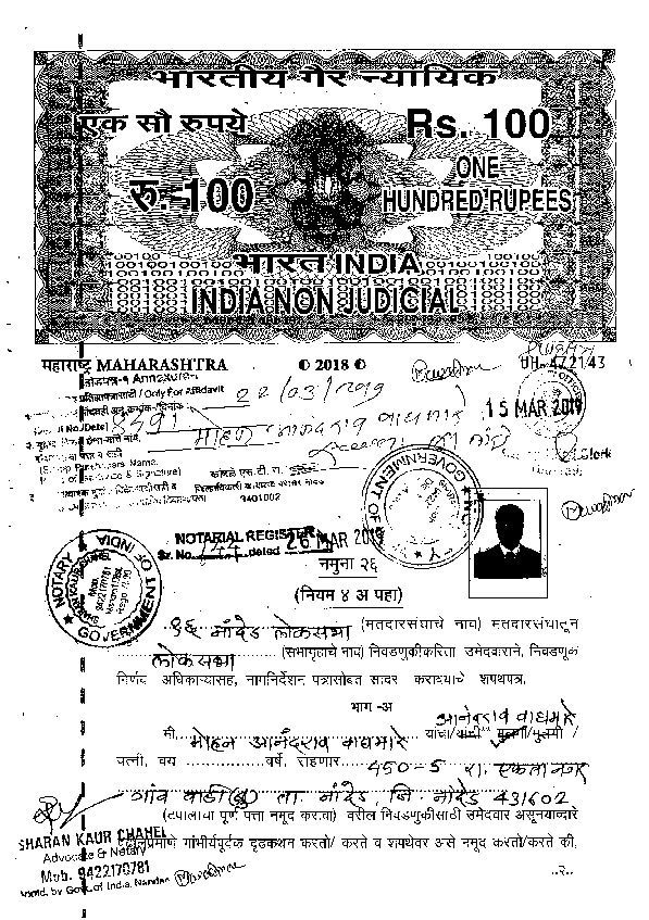 | மகாராட்டிரம் | நாக்பூர் | Thursday, 11 April 2019 | Ravikant Shankar Meshram(Affadavit) | Nitin Jairam Gadkari |