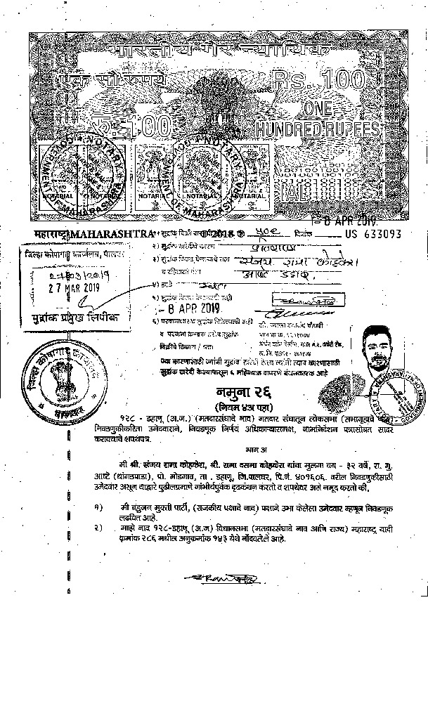 | மகாராட்டிரம் | Palghar | Monday, 29 April 2019 | Sanjay Rama Kohkera(Affadavit) | Rajendra Dhedya Gavit |