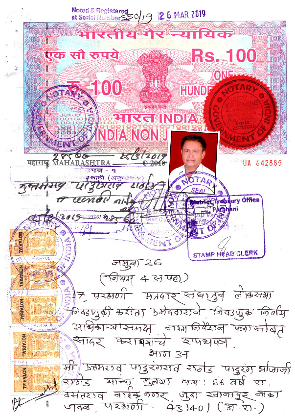 | மகாராட்டிரம் | Parbhani | Thursday, 18 April 2019 | Uttamrao Pandurangrao Rathod(Affadavit) | Jadhav Sanjay (bandu) Haribhau |