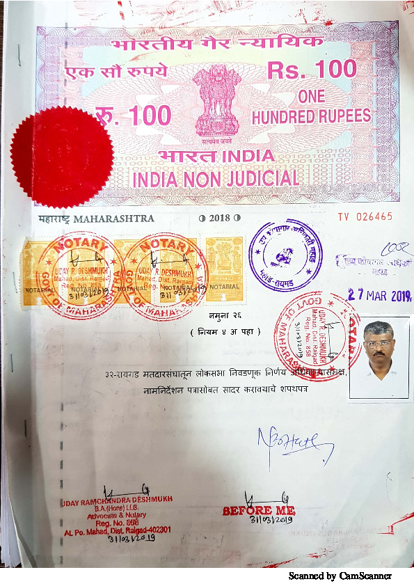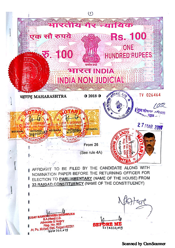 | மகாராட்டிரம் | Raigad | Tuesday, 23 April 2019 | Nathuram Bhaguram Hate(Affadavit) | Tatkare Sunil Dattatray |