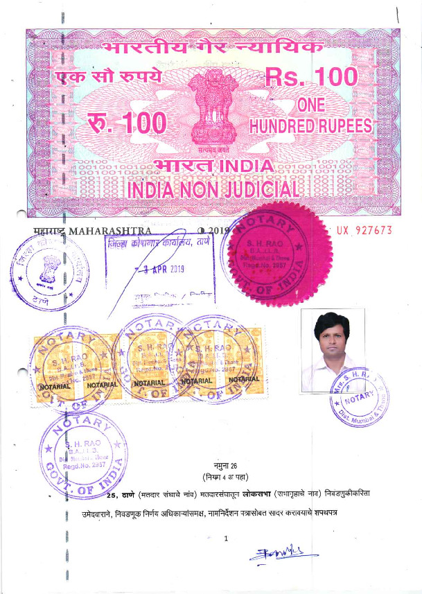 | மகாராட்டிரம் | Mumbai North | Monday, 29 April 2019 | Samaysingh Anand Chanda Liya(Affadavit) | Gopal Shetty |