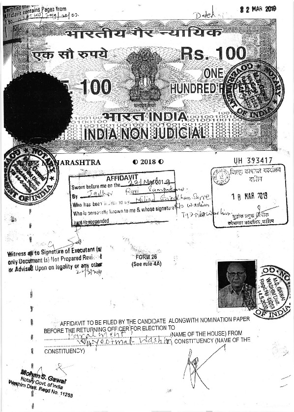 | மகாராட்டிரம் | Yavatmal-washim | Thursday, 11 April 2019 | Ashok Madhukar Khobragade(Affadavit) | Bhavana Pundlikrao Gawali |