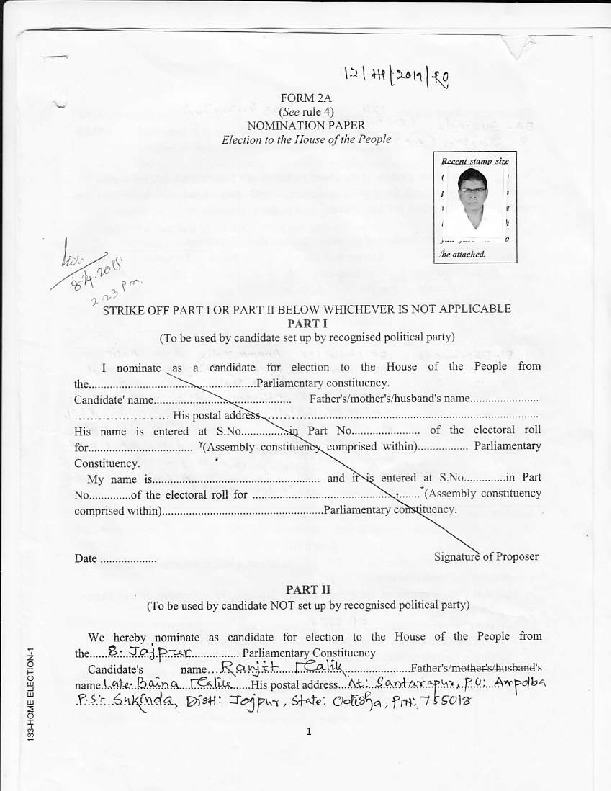 | ஒடிசா | Jajpur | Monday, 29 April 2019 | Ranjit Malik(Affadavit) | Sarmistha Sethi |