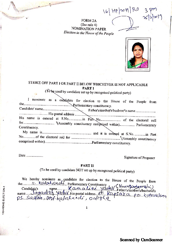 | ஒடிசா | Kalahandi | Thursday, 11 April 2019 | Kamalini Yadav(Affadavit) | Basanta Kumar Panda |