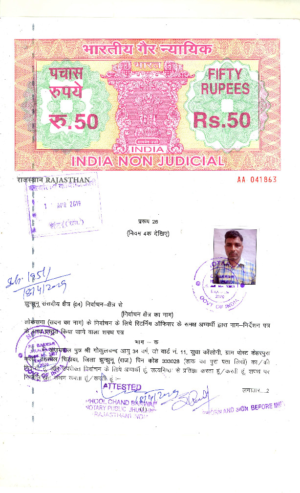 | ராஜஸ்தான் | Jhunjhunu | Monday, 6 May 2019 | Ajay Pal(Affadavit) | Narendra Kumar |