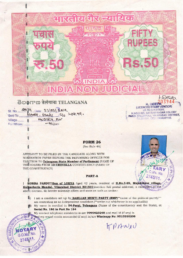 | தெலங்காணா | Chelvella | Thursday, 11 April 2019 | Korra Pandu Naik(Affadavit) | Reddy,shri Konda Vishweshwar |