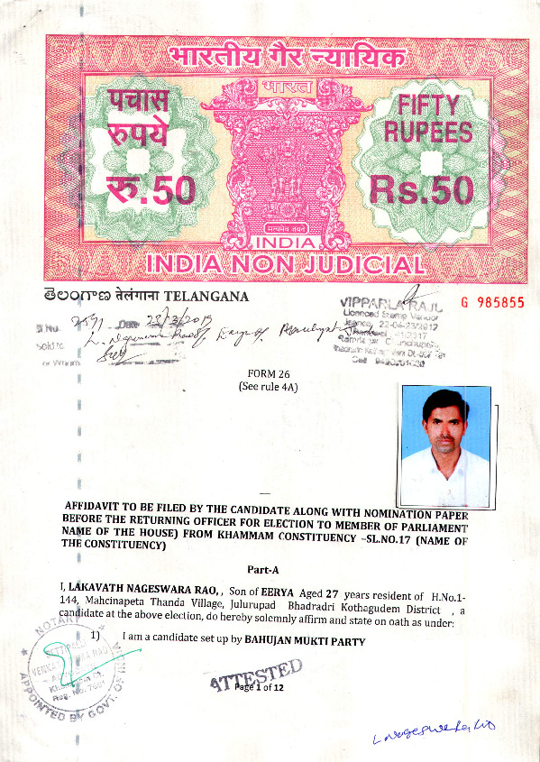 | தெலங்காணா | கம்மம் | Thursday, 11 April 2019 | Lakavath Nageswara Rao(Affadavit) | Reddy,shri Ponguleti Srinivasa |