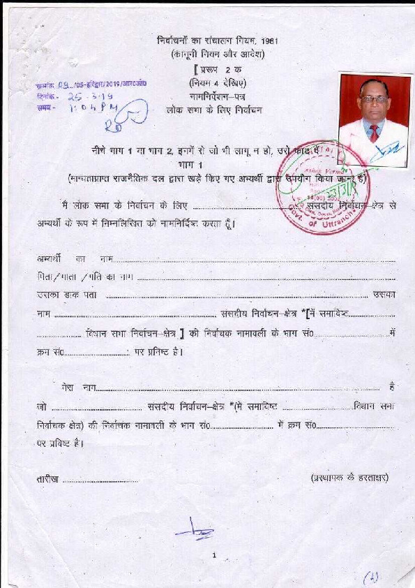 | உத்தராகண்டம் | Hardwar | Thursday, 11 April 2019 | Bhanpal Singh(Affadavit) | Ramesh Pokhriyal 'nishank' |