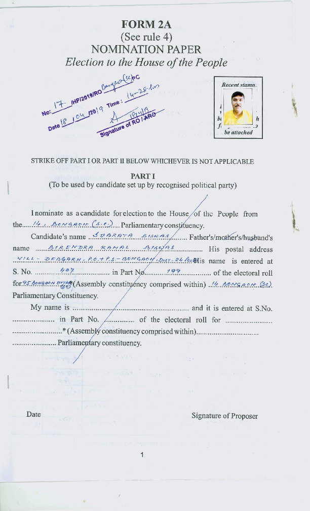 | மேற்கு வங்காளம் | Bangaon | Monday, 6 May 2019 | Subrata Biswas(Affadavit) | Shantanu Thakur |
