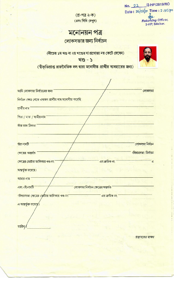 | అసోం | Silchar | Thursday, 18 April 2019 | Badrul Islam Barbhuiya(Affadavit) | Rajdeep Roy |