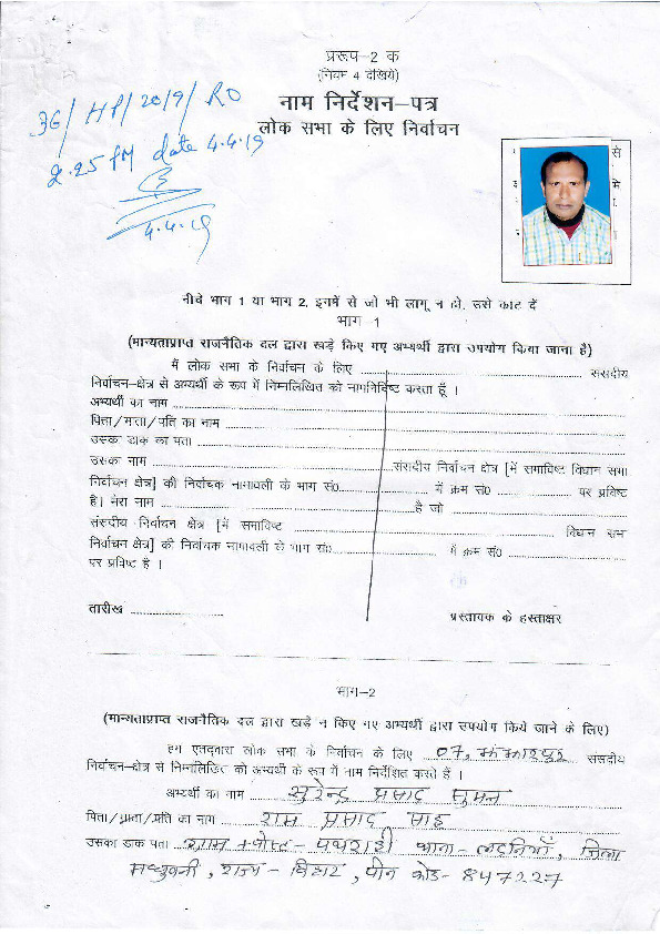 | బీహార్ | Jhanjharpur | Tuesday, 23 April 2019 | Surendra Prasad Suman(Affadavit) | Ramprit Mandal |