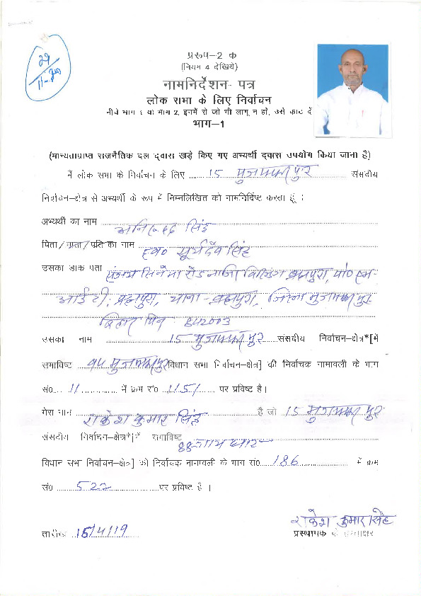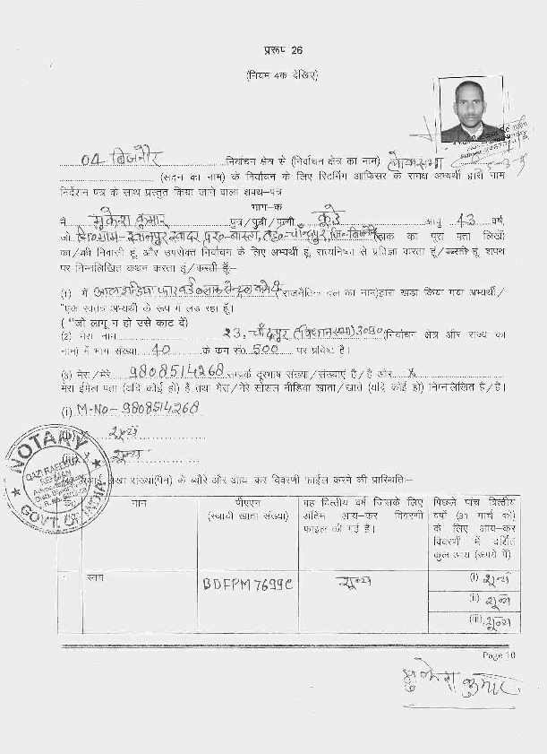 | ఉత్తర ప్రదేశ్ | Bijnor | Thursday, 11 April 2019 | Mukesh Kumar(Affadavit) | Malook Nagar |