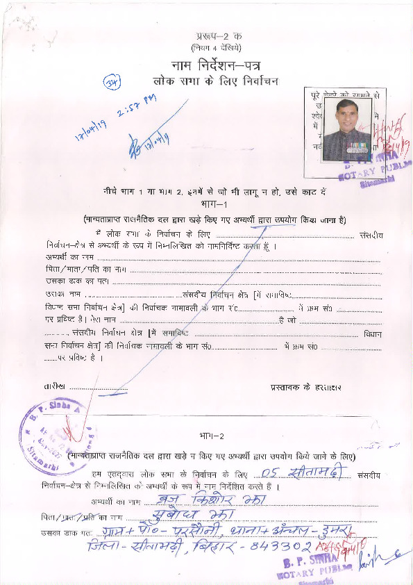 | బీహార్ | Sitamarhi | Monday, 6 May 2019 | Braj Kishor(Affadavit) | Sunil Kumar Pintu |