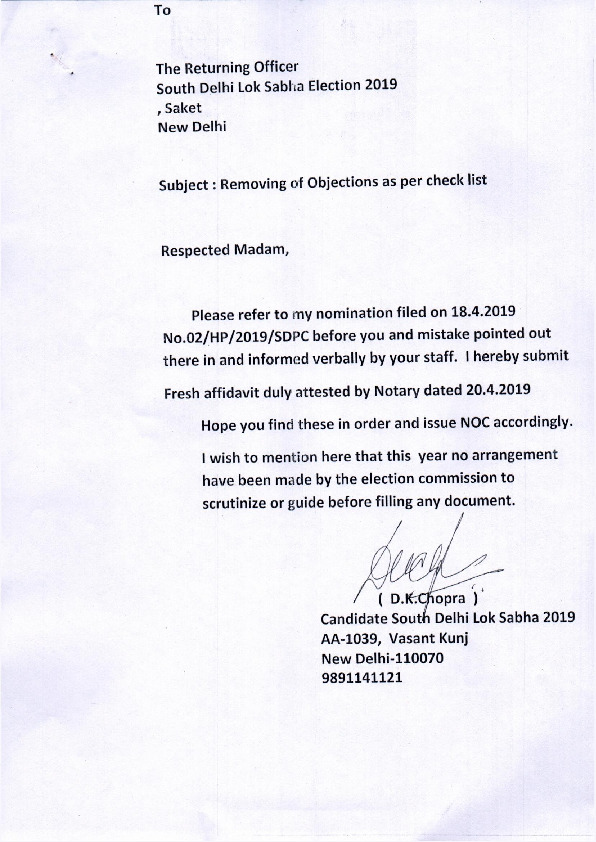 | ఢిల్లీ | దక్షిణ ఢిల్లీ | Sunday, 12 May 2019 | D K Chopra(Affadavit) | Ramesh Bidhuri |