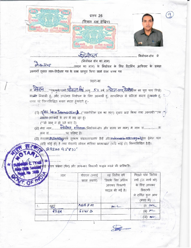 | హర్యానా | Sonipat | Sunday, 12 May 2019 | Mohan(Affadavit) | Ramesh Chander Kaushik |
