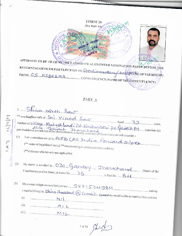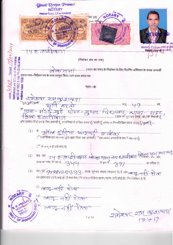 | జార్ఖండ్ | Kodarma | Monday, 6 May 2019 | Shivnath Saw(Affadavit) | Annpurna Devi |