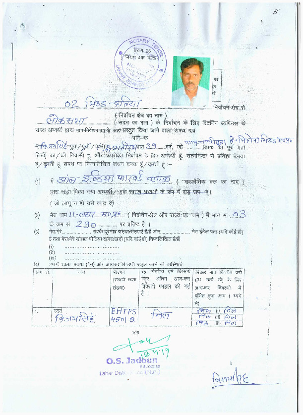 | మధ్య ప్రదేశ్ | Bhind | Sunday, 12 May 2019 | Vijay Singh Patwa(Affadavit) | Sandhya Ray |
