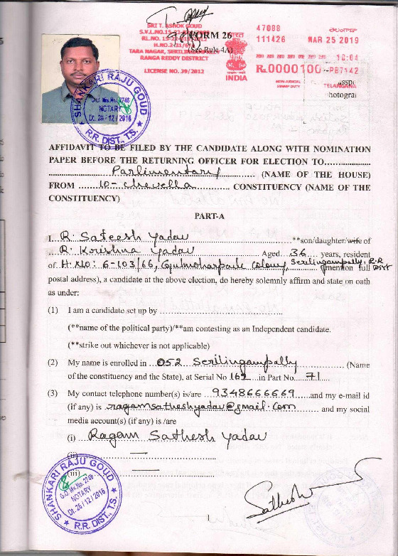 | తెలంగాణ | Chelvella | Thursday, 11 April 2019 | Ragam Sathesh Yadav(Affadavit) | Reddy,shri Konda Vishweshwar |